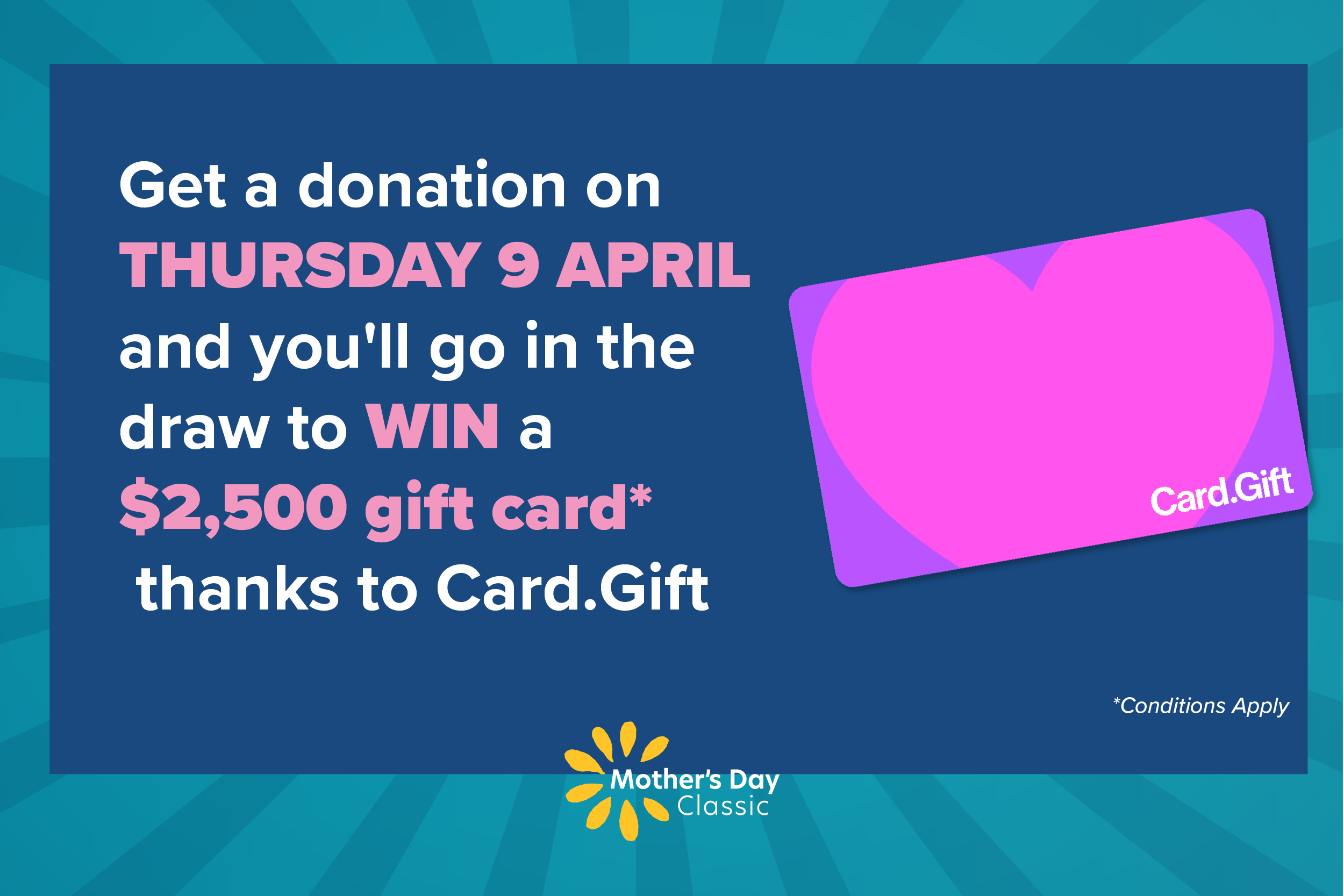 Raise $500 and go into the draw to win a $500 gift card thanks to Card.Gift.