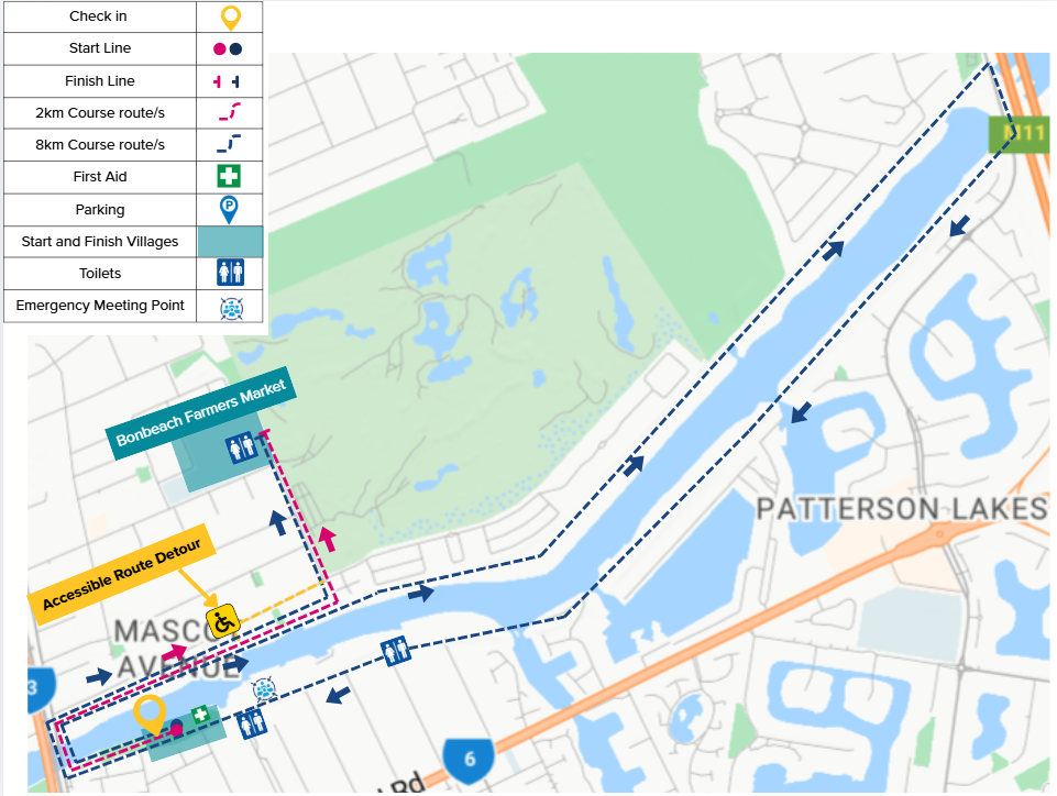 The course begins at the Patterson River foreshore and follows a scenic path along the river, offering peaceful water views and a gentle, flat route. Participants will make their way toward Bonbeach, finishing at the vibrant Bonbeach Farmers Market.