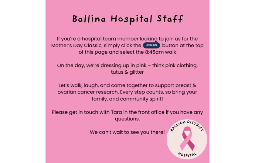 Support the Ballina District Hospital team in the 2026 Mother’s Day Classic!